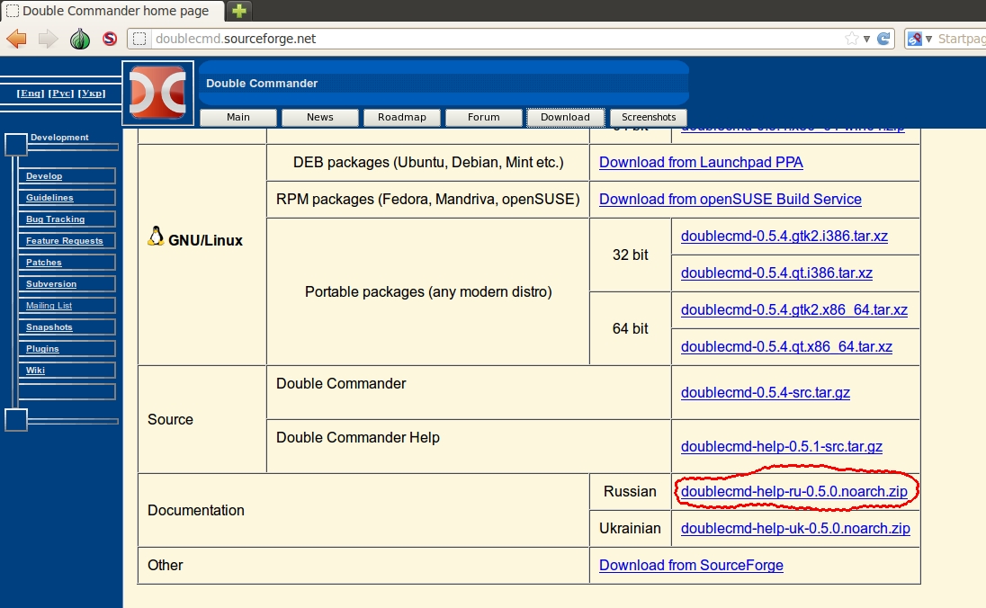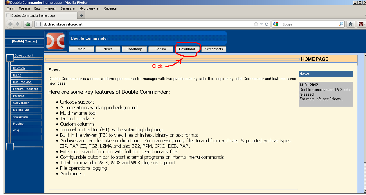 Скачать программу можно с официального сайта проекта: http://doublecmd.sourceforge.net Для загрузки необходимо нажать на кнопку "Download".