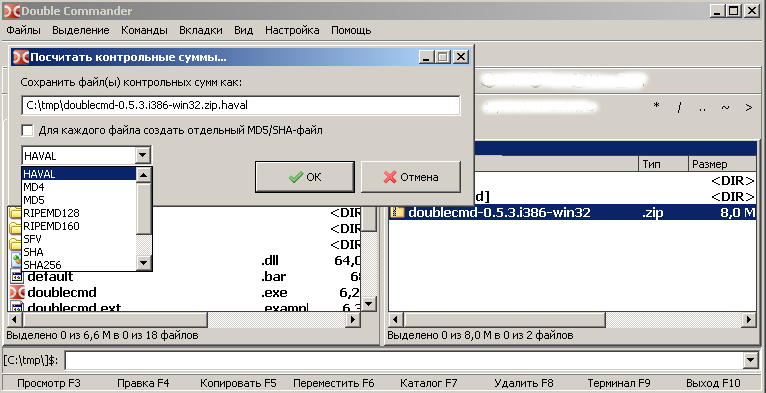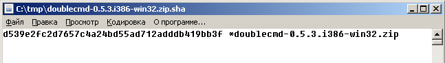 Результат помещаетсяв в файл с расширением, соответствующим алгоритму хэширования (например doublecmd-0.5.3.i386-win32.zip.sha).