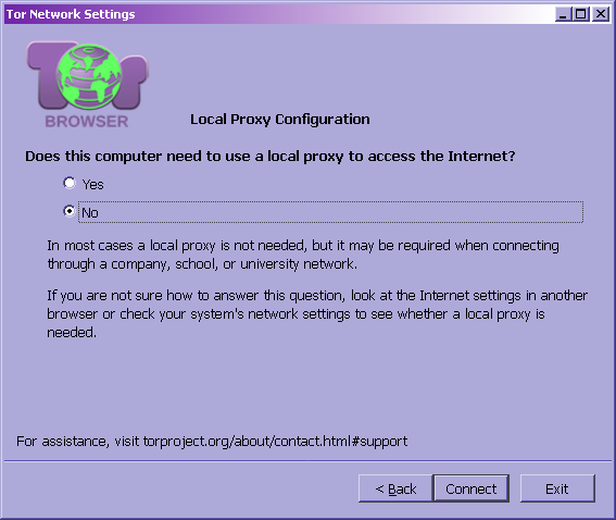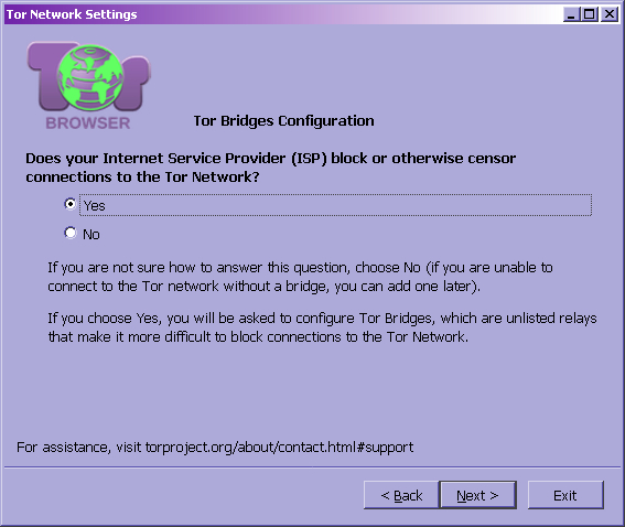 В появившемся окне выбираем Yes (провайдер блокирует Tor):