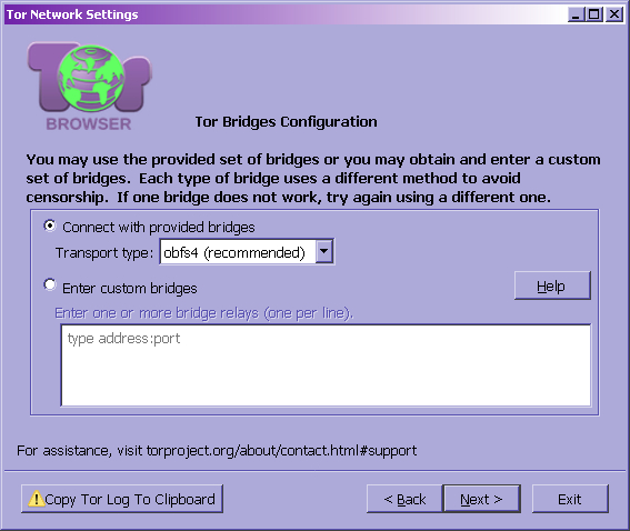 Цензор также может пытаться отследить Tor-соединение по особенностям трафика. Но уже давно придуманы средства маскировки Tor-трафика под массово используемые протоколы вроде https, srtp и т.д. Средства маскировки встроены в TorBrowser и их можно активировать при настройке режима прорыва блокады.