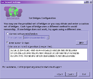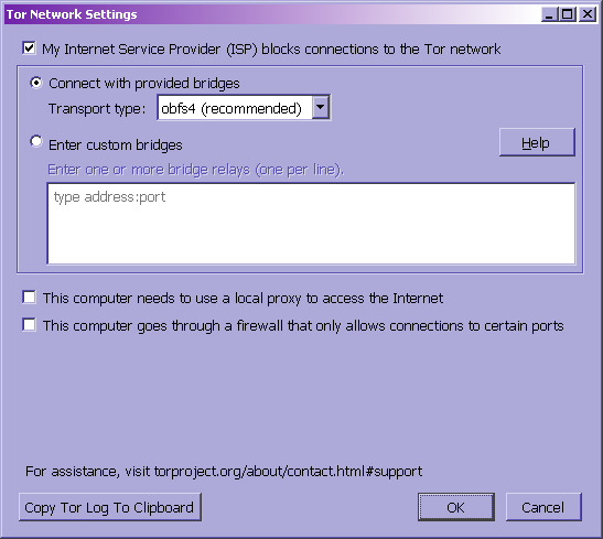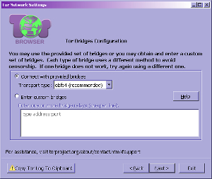 Цензор естественно будет пытаться выявить эти мосты, в ольгино будут круглосуточно слать запросы на их получение и передавать хозяевам их адреса для блокировки. Но появление новых мостов носит случайный характер, а высоконагруженные фильтры цензора не могут обновляться моментально. Поэтому часть мостов будет оказываться в черных списках, но будут появляться все новые. И через некоторое количество попыток соединение будет вновь установлено. Кроме того можно создавать скрытые мосты, адреса которых знает лишь круг посвещенных, а с этим бороться автоматизированно уже невозможно. Опыт показывает, что справиться с Tor не смогли даже в китае. Подключение через мосты встроено в TorBrowser и его можно использовать при настройке режима прорыва блокады.