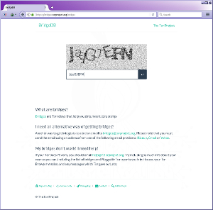 Получение мостов через сайт - наиболее простой вариант (правда сайт скорее всего заблокируют). Залезаем на сайт https://bridges.torproject.org/bridges, разгадываем тест Тьюринга (капча) и вводим ответ, жмем кнопку или клавишу Enter: