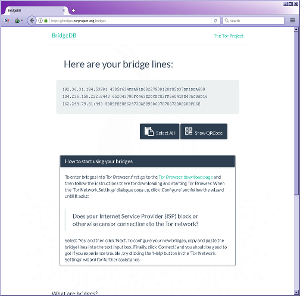 Итак, основной проблемой является блокировка публичных узлов Tor-сети. Для обхода этого в TorProject придумали специальные узлы, называемые мостами (bridge). Это непубличные входные узлы, небольшую порцию которых пользователь может получить специальным запросом. Поскольку мосты непубличны, то цензор ничего о них не знает и TorBrowser соединяется через них с Tor-сетью. Мосты запускаются добровольцами точно также, как и публичные узлы.