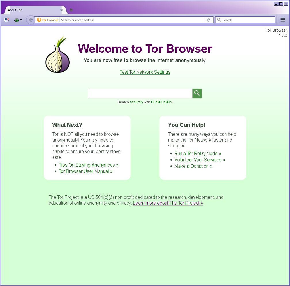 Для общедоступного анонимного использования сети Internet сообществом TorProject создан и постоянно совершенствуется браузер TorBrowser. Он включает в себя программу-анонимизатор Tor, браузер на основе Mozilla Firefox с установленными открытыми дополнениями. Tor Browser работает портативно, т.е. без инсталляции в операционную систему, например, может запускаться прямо с флэшки. Скачивать его надо только с официального сайта TorProject: https://www.torproject.org/download/download-easy.html.en
